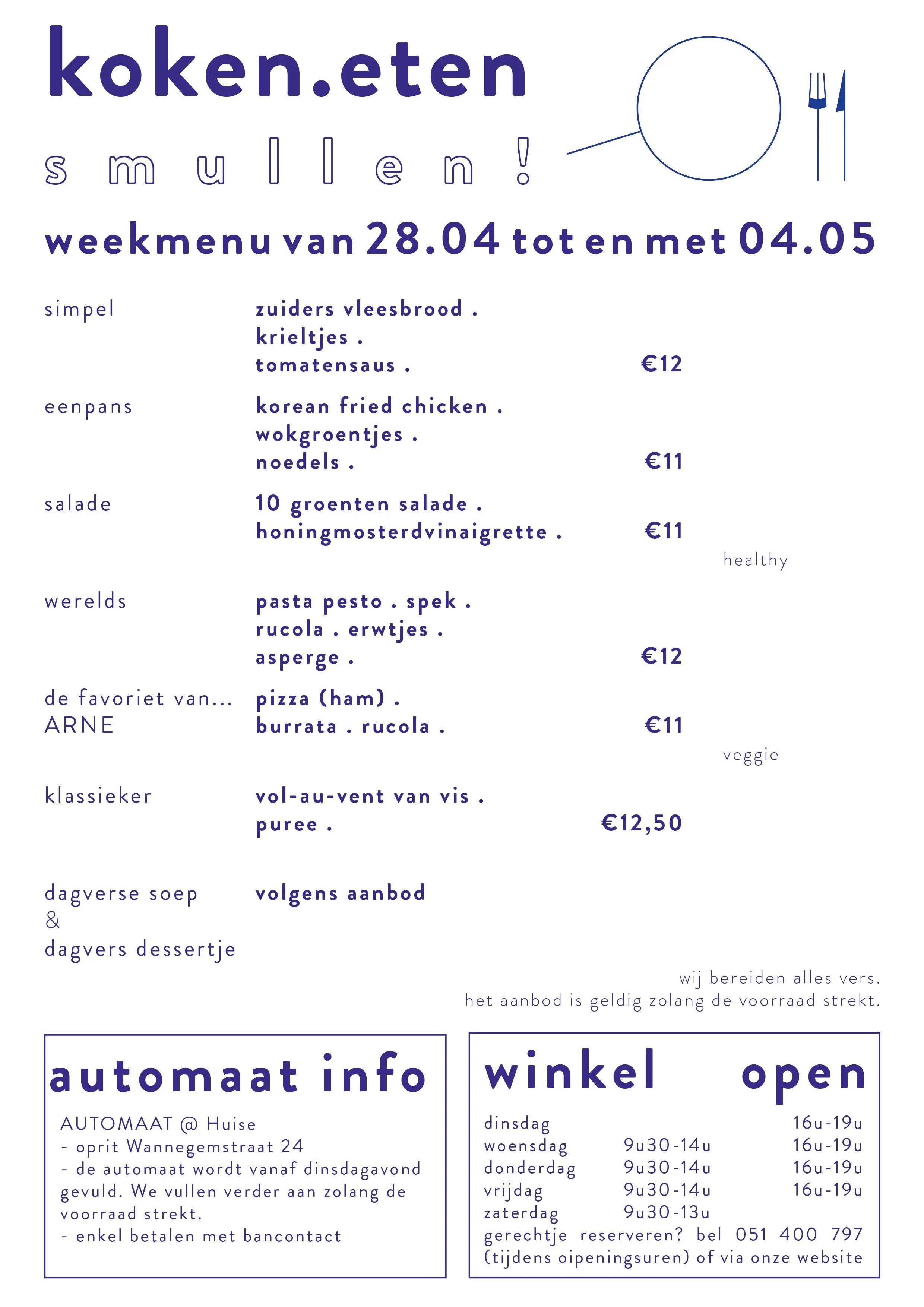 Koken.eten is een traiteur- & cateringzaak in hartje Hooglede. We voorzien al 5 jaar onze klanten van huiselijke, (h)eerlijke gerechten. Onze hoofdingrediënten zijn verse producten & een persoonlijke aanpak. We kruiden graag af met een wolkje nostalgie, een snuifje creativiteit en een theelepel originaliteit.